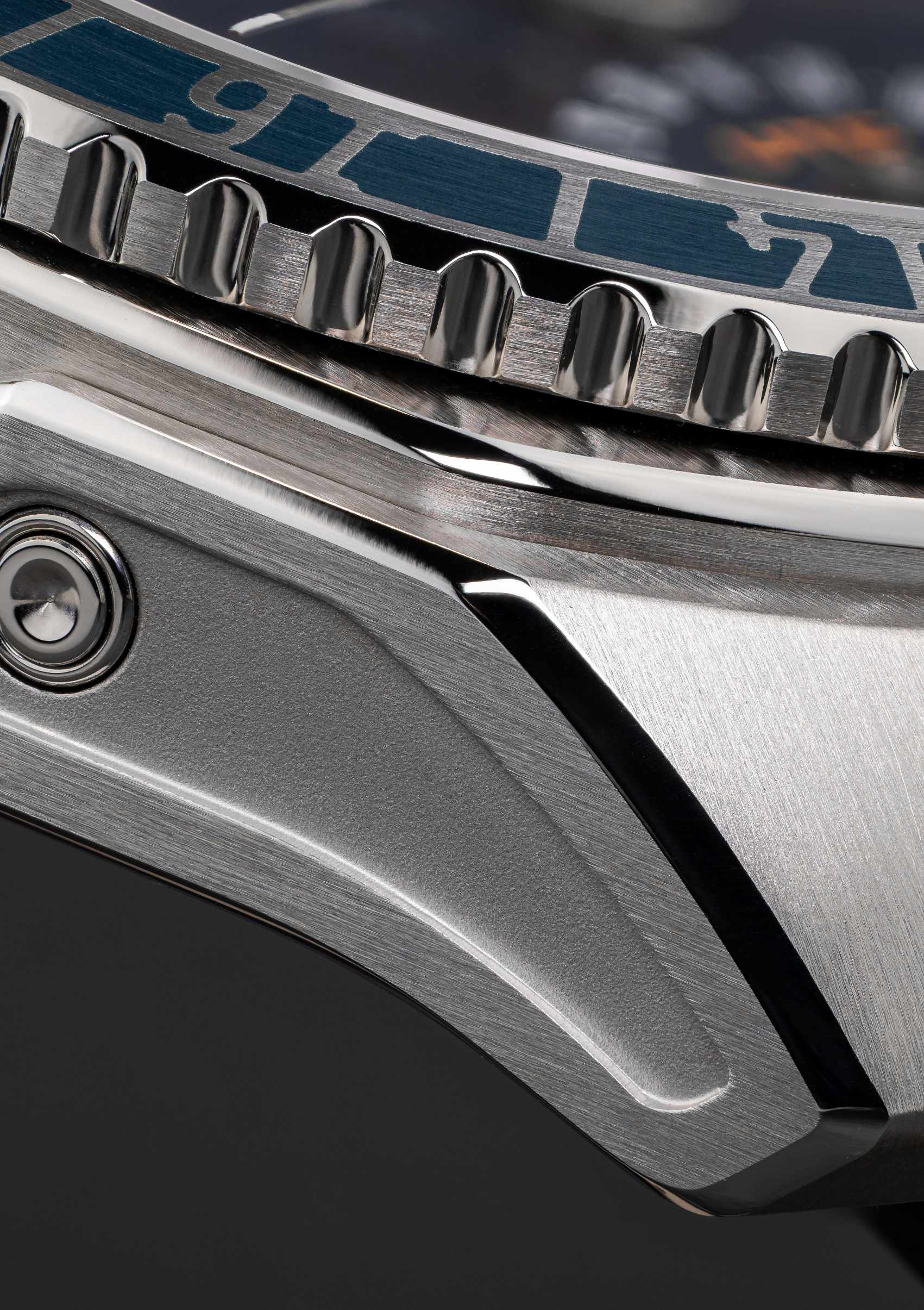 - Beidseitig drehbare GMT-Lünette aus Edelstahl mit 48 Klicks