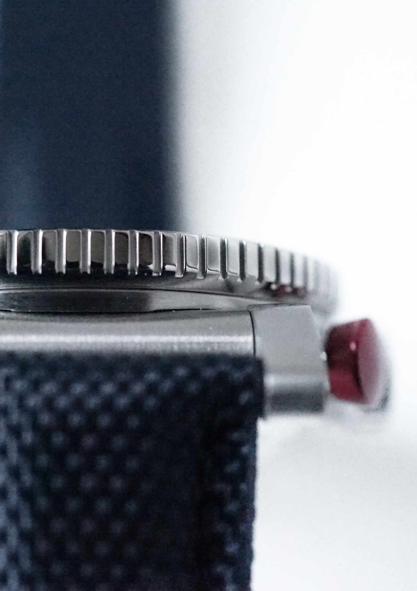 - Kannelierte Lünette mit roter Markierung (nicht drehbar)