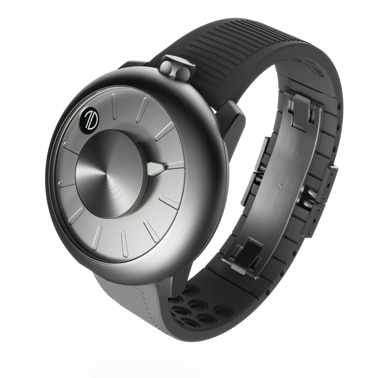 Im Inneren arbeitet das La Joux-Perret G101 Soigné, ein automatisches Schweizer Uhrwerk mit solider Gangreserve und hochwertiger Ausführung. Die Isotope Founders Edition richtet sich an Interessenten, die eine technisch ungewöhnliche Anzeige mit klarem Design suchen.