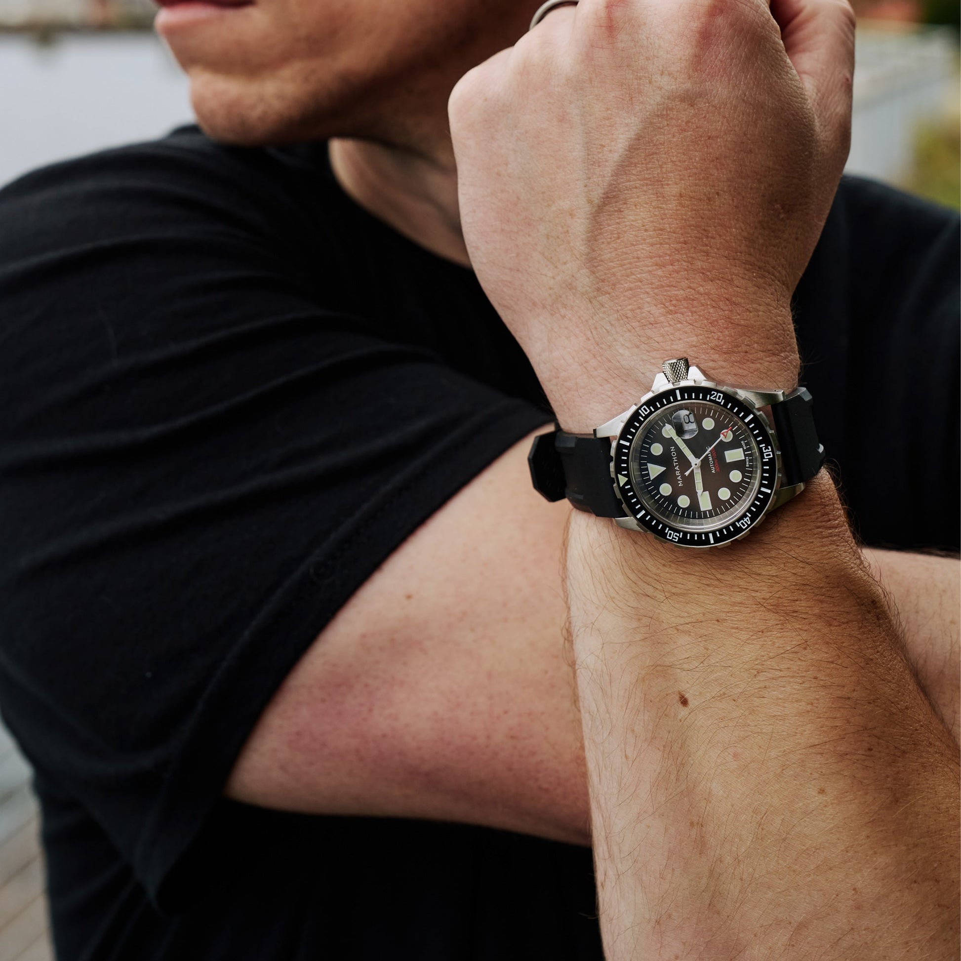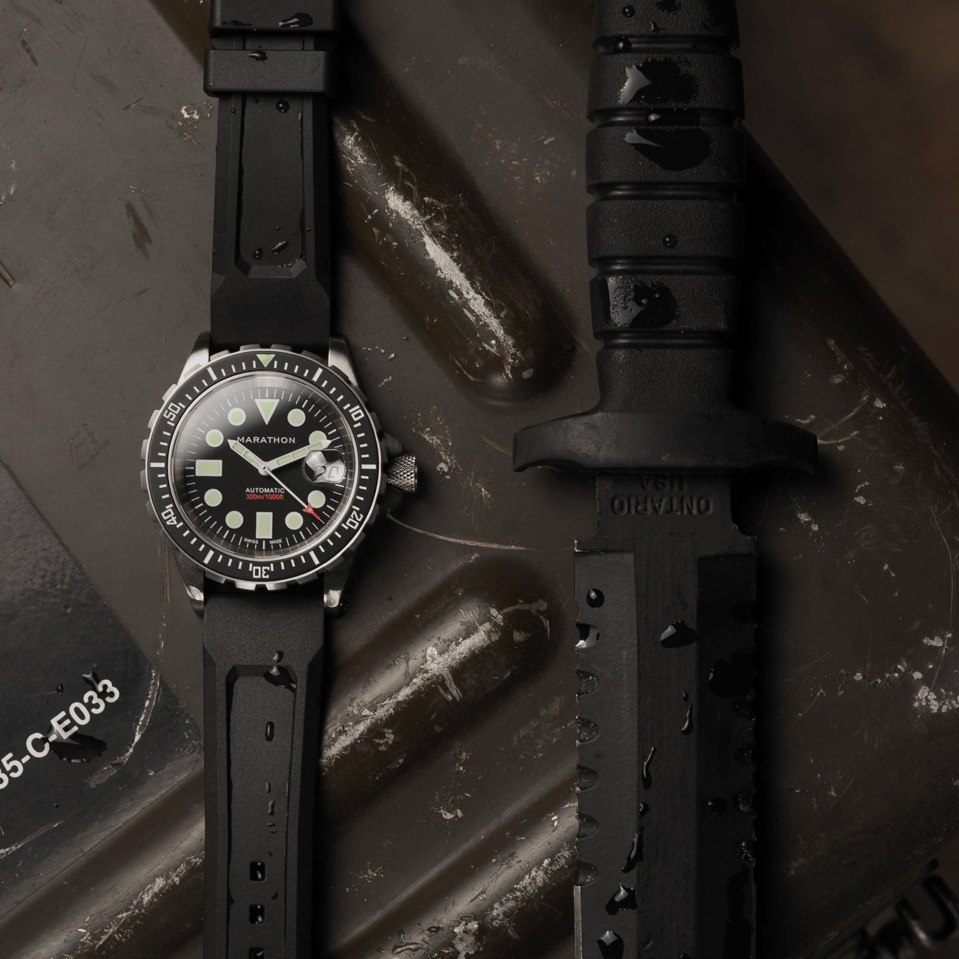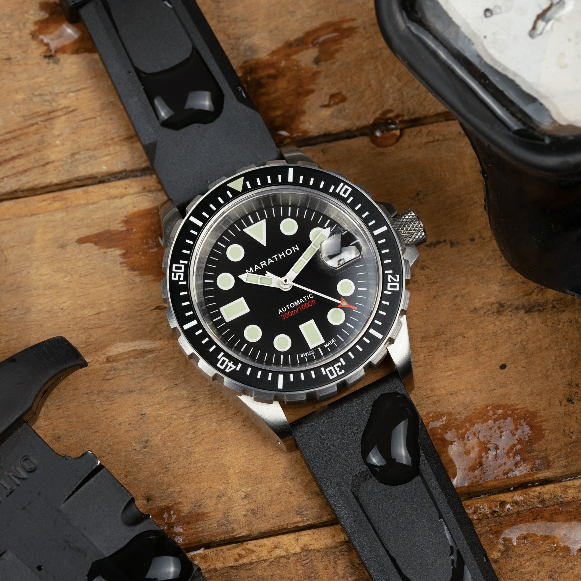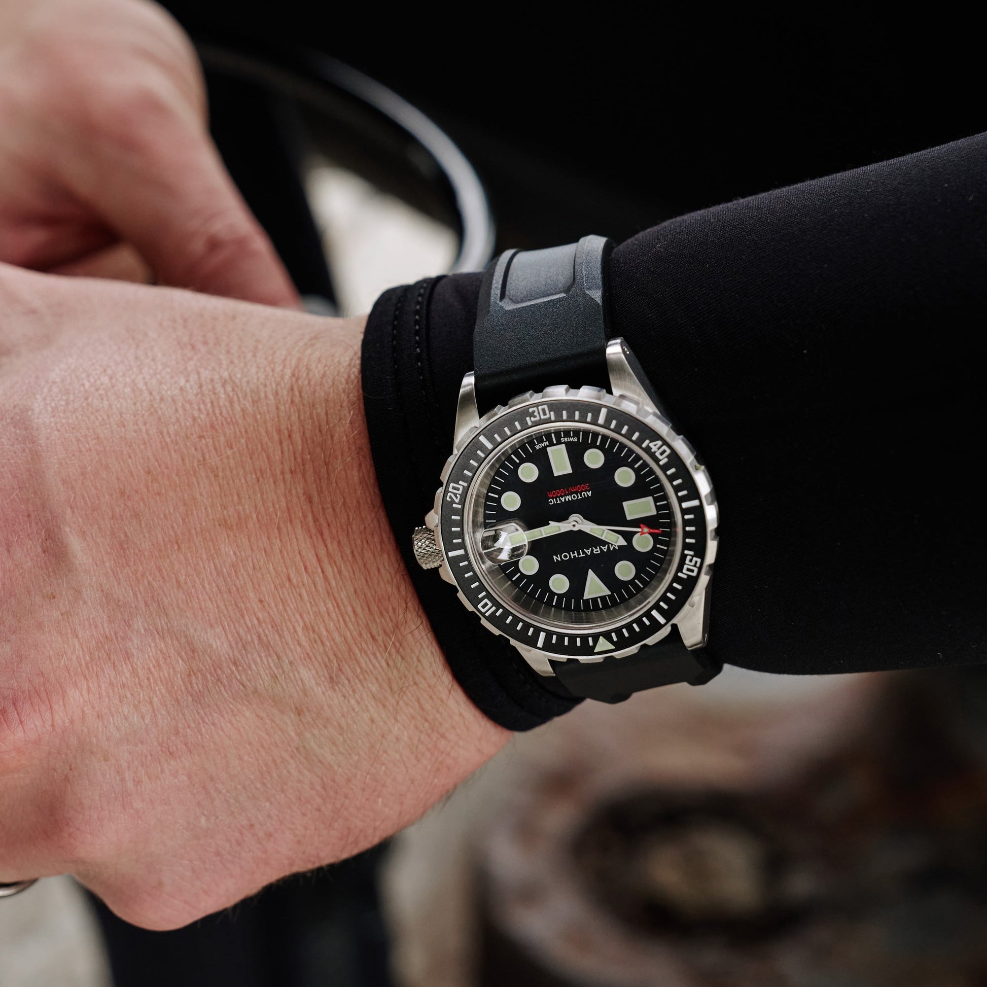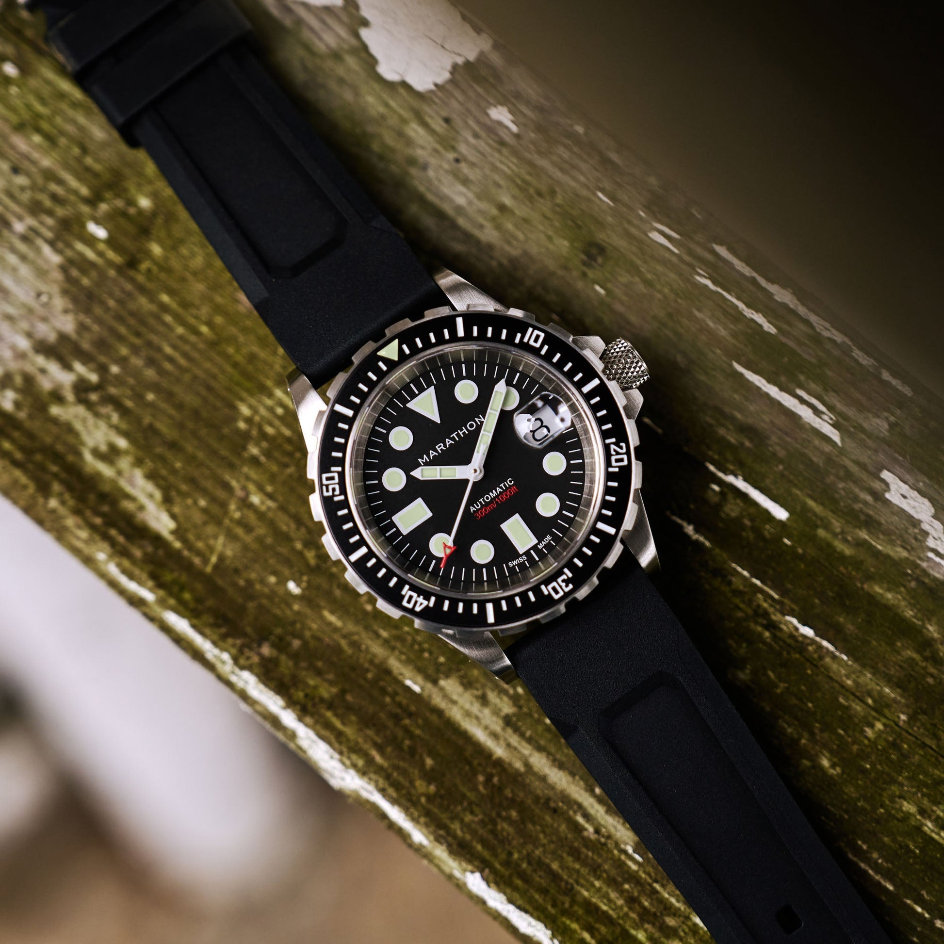 - Schwarzes Marathon Kautschukarmband inkl. Dornschließe aus 316L-Edelstahl
