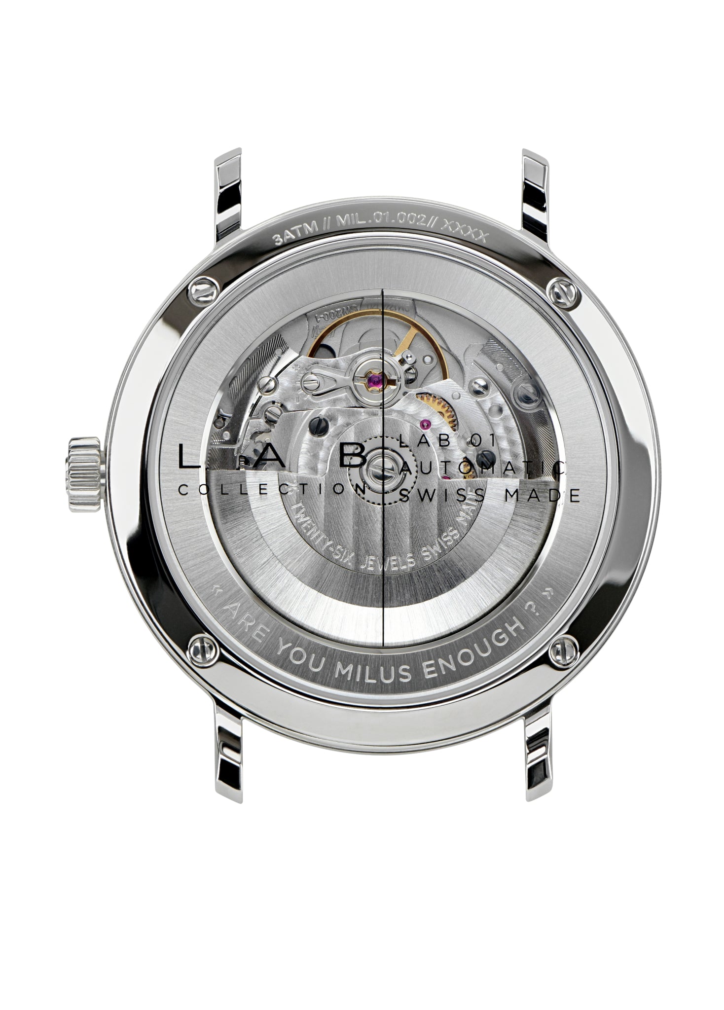 Kreation und Einzigartigkeit sind die wichtigsten Grundlagen der Kollektion LAB 01. Zeitlose Ästhetik mit einem innovativen Material. Mit ihrem schlanken und hochmodernen Design, das urbane Linien nachahmt, spiegeln diese Modelle die Eleganz eines aktiven urbanen Lebensstils wider. Inspiriert von den Milus Codes der 90er Jahre und unter Berücksichtigung des Gedankens: “Die Uhr spricht für sich selbst”, kultiviert LAB 01 die Unabhängigkeit des Geistes und die Einzigartigkeit. Das Ergebnis: ein Designobjekt, das jede Persönlichkeit und jeden Stil respektiert.