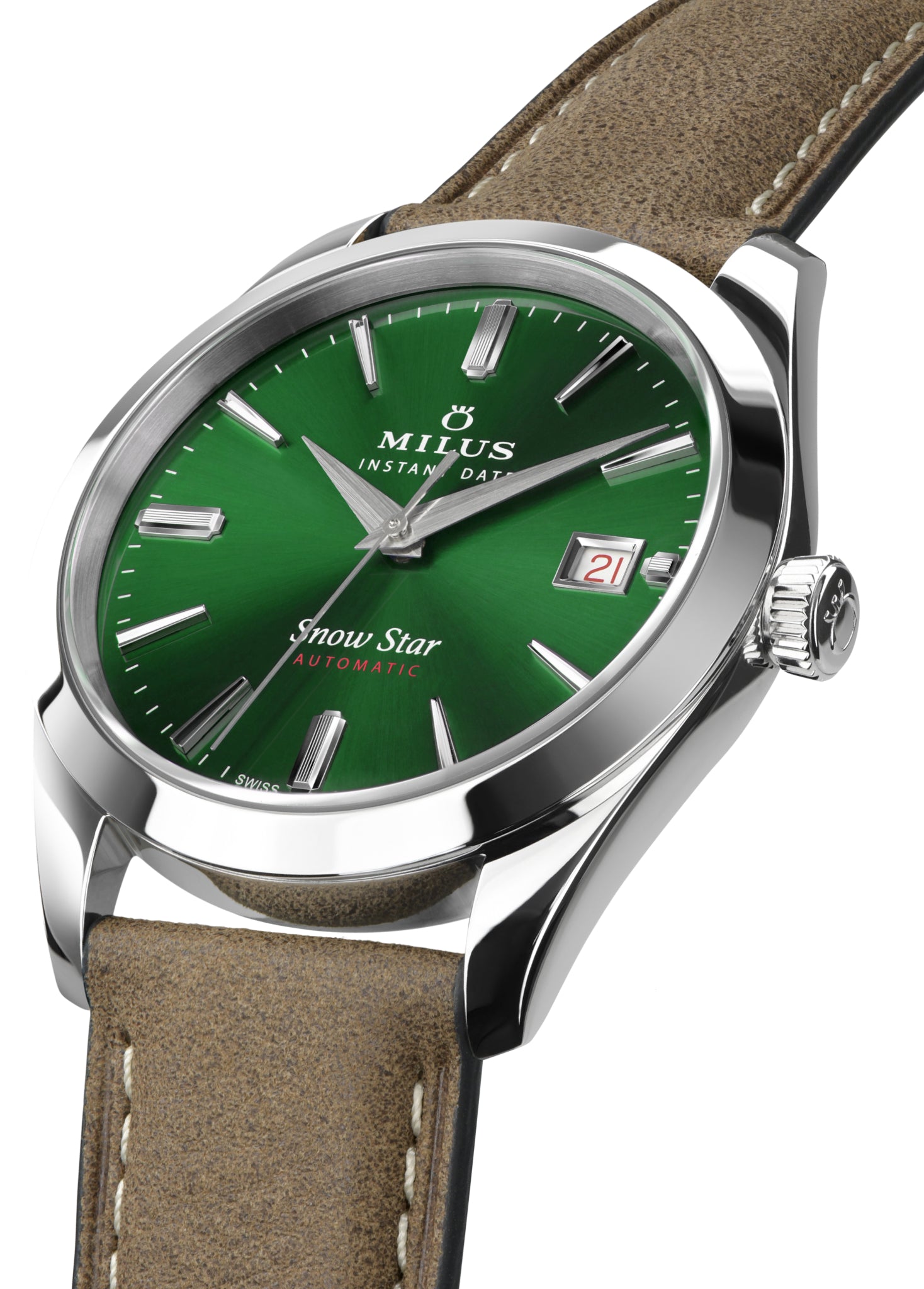 Zum Anlass des 100-jährigen Jubiläums der Marke und ausgehend von ihrer langen Geschichte im Uhrmacherhandwerk hat Milus eine neue Version der “Snow Star” herausgebracht. Das damalige Modell wurde von der US Navy ausgewählt und in ihr “Rettungspaket” integriert, das den Piloten bei einer Notlandung ausgehändigt wurde: Im 20. Jahrhundert erhielten die Piloten der US-Marine wertvolle, handelbare Gegenstände mit auf ihre Missionen, um ihr Überleben zu sichern. Diese “Life Barter Kits” enthielten häufig eine Milus Snow Star Uhr. Mit der Neuauflage des Modells Snow Star erweist Milus diesem wichtigen Baustein der eigenen Historie und der Geschichte im Allgemeinen heute die Ehre.