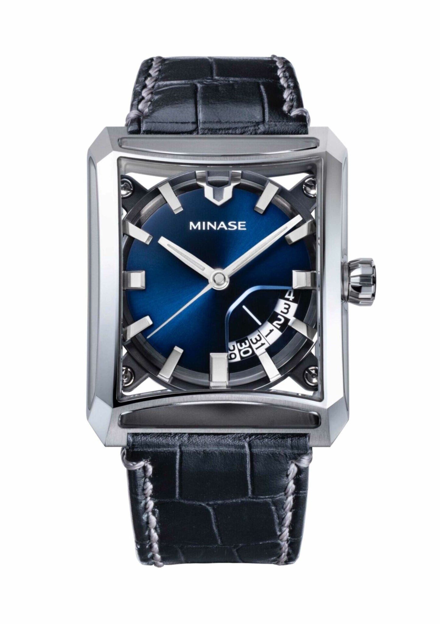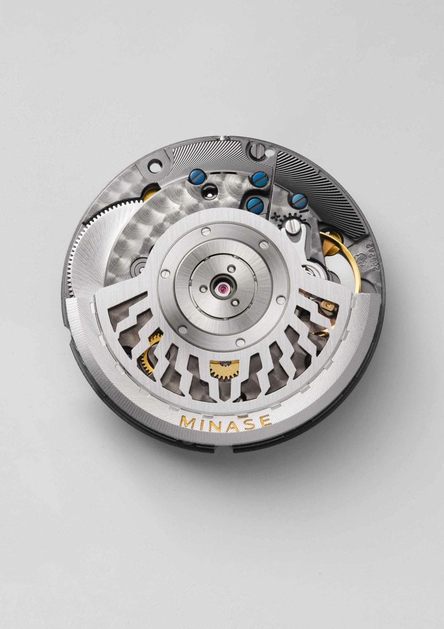 - Automatikwerk (mechanischer Selbstaufzug), hergestellt in der Schweiz, modifiziert von MINASE, handpoliert und verziert mit Perlage auf den Platinen und Brücken