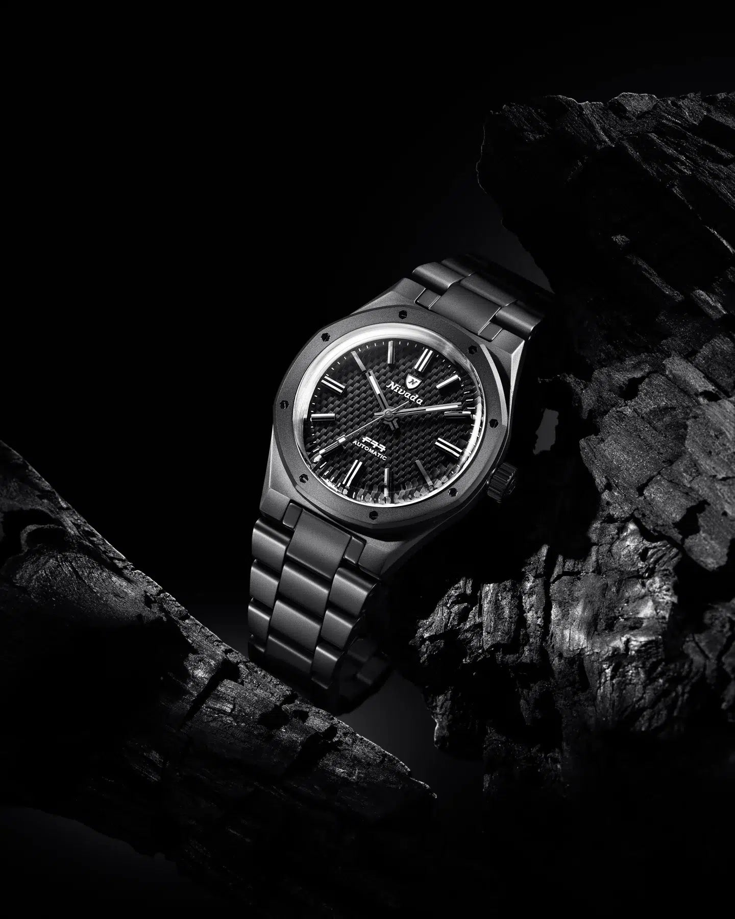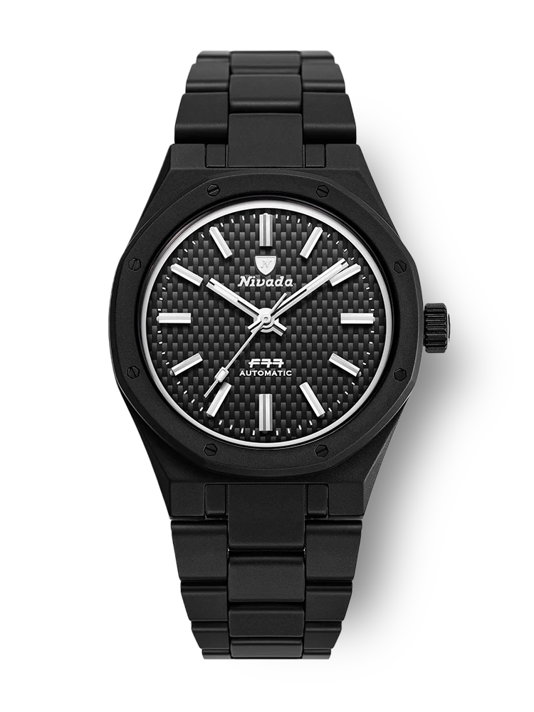 Nivada Grenchen F77 - Black Ceramic Braided Dial 68004A77