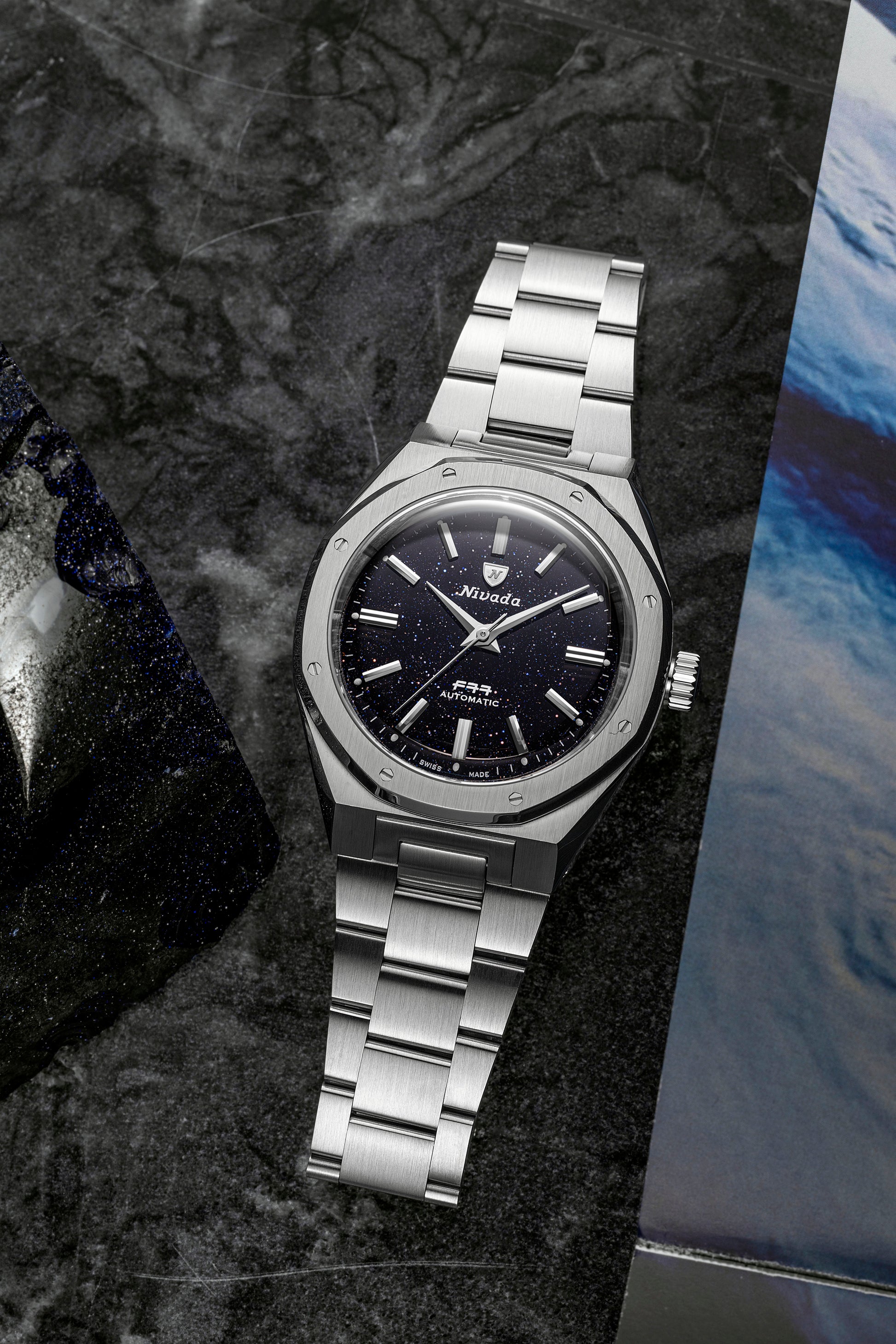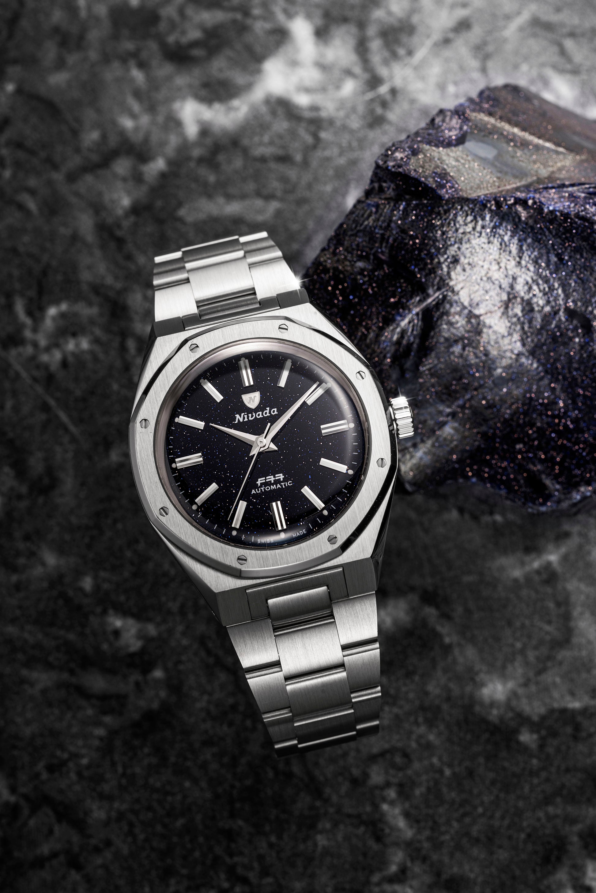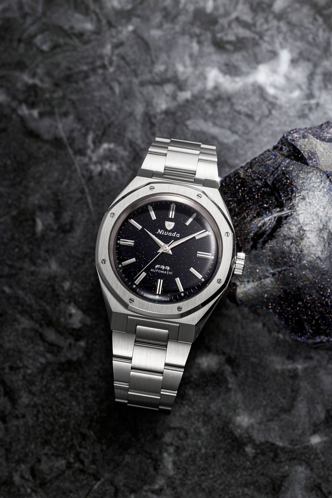 - Nivada Grenchen F77 Mark 2 68047A77: Zifferblatt aus blauem Aventurin