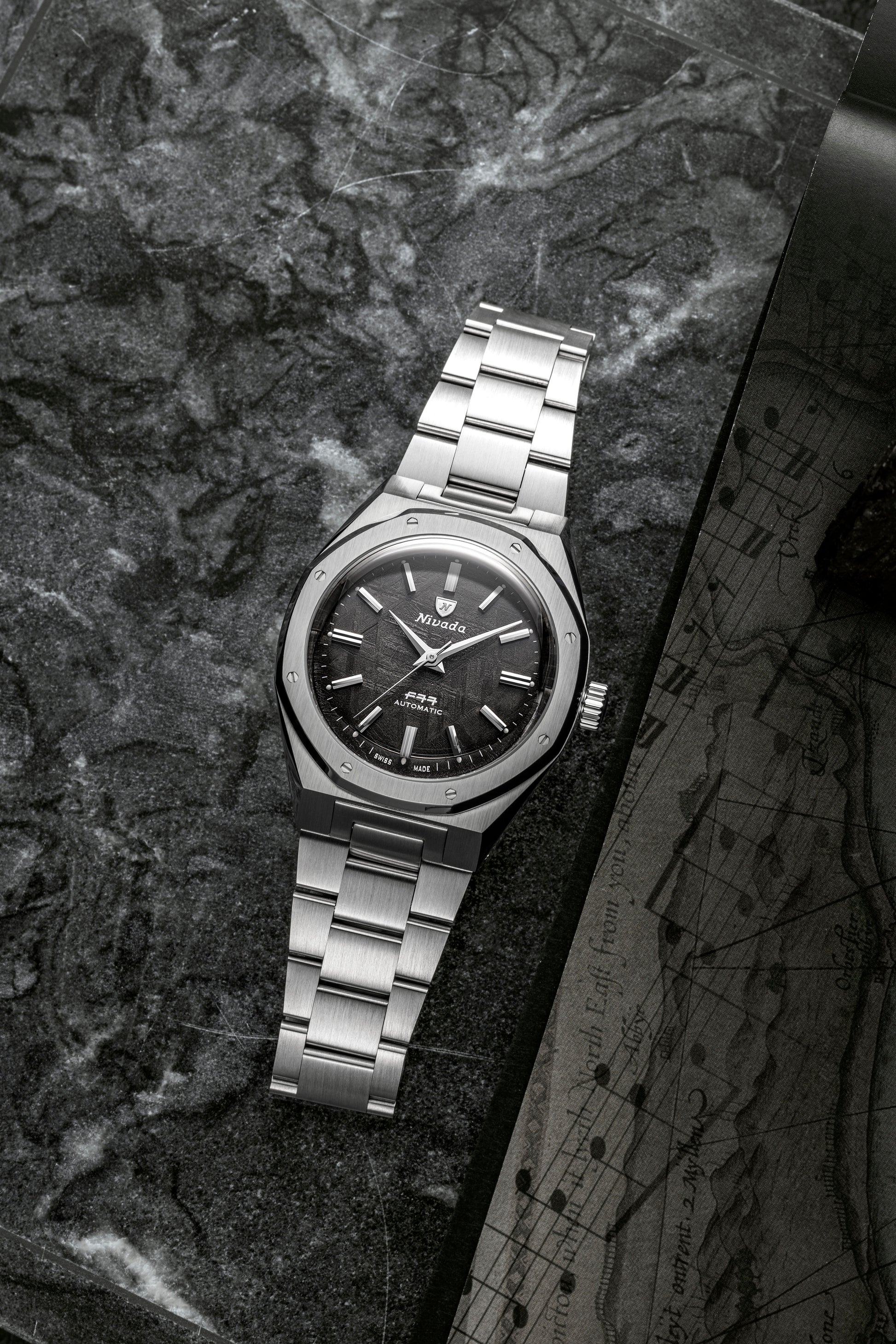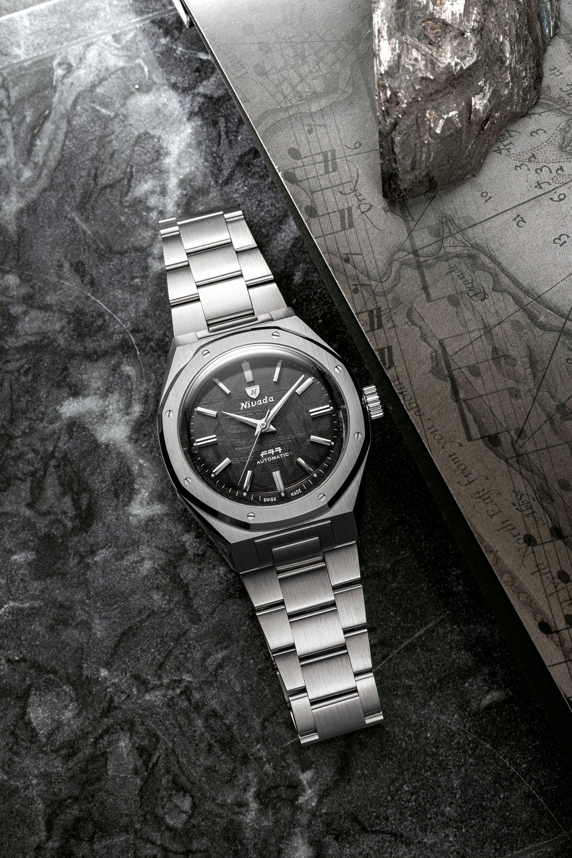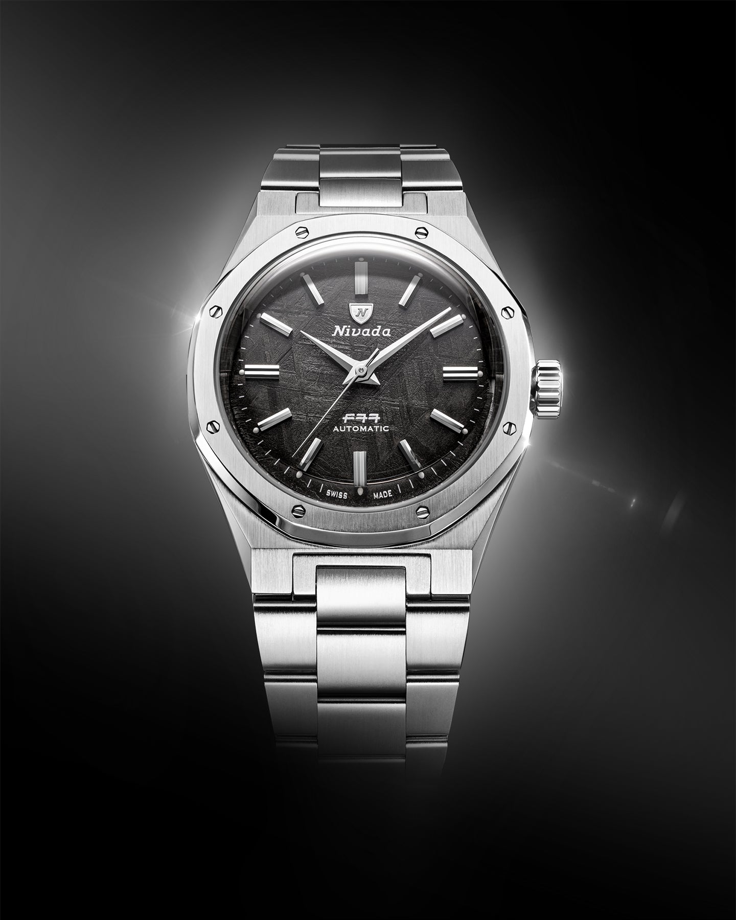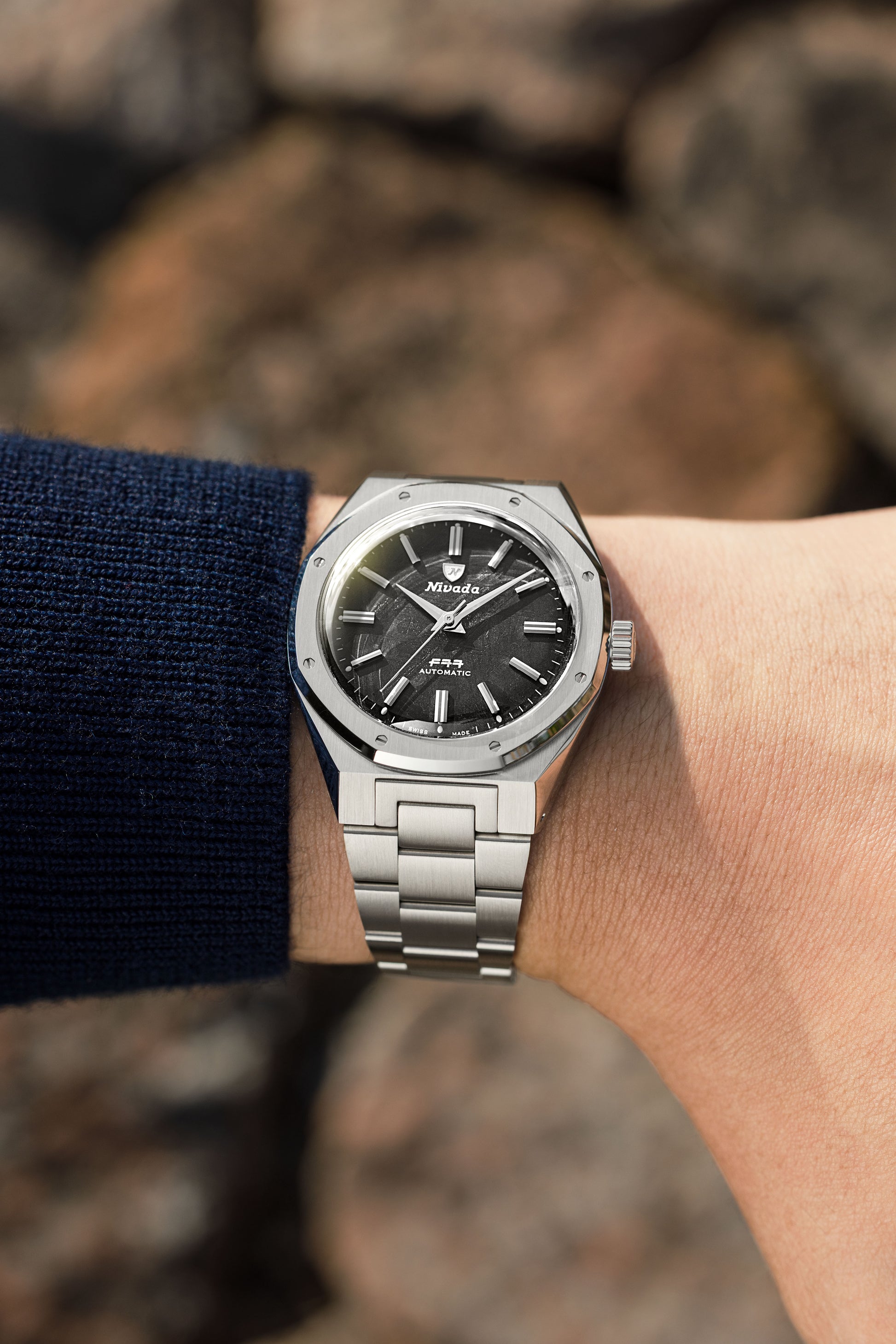 - Nivada Grenchen F77 Mark 2 68049A77: Meteorit-Zifferblatt aus echtem Meteorit-Gestein