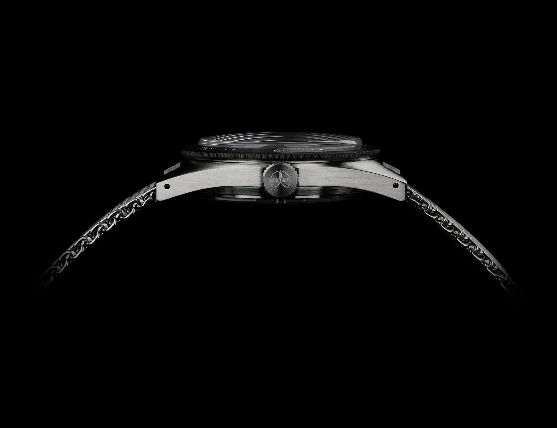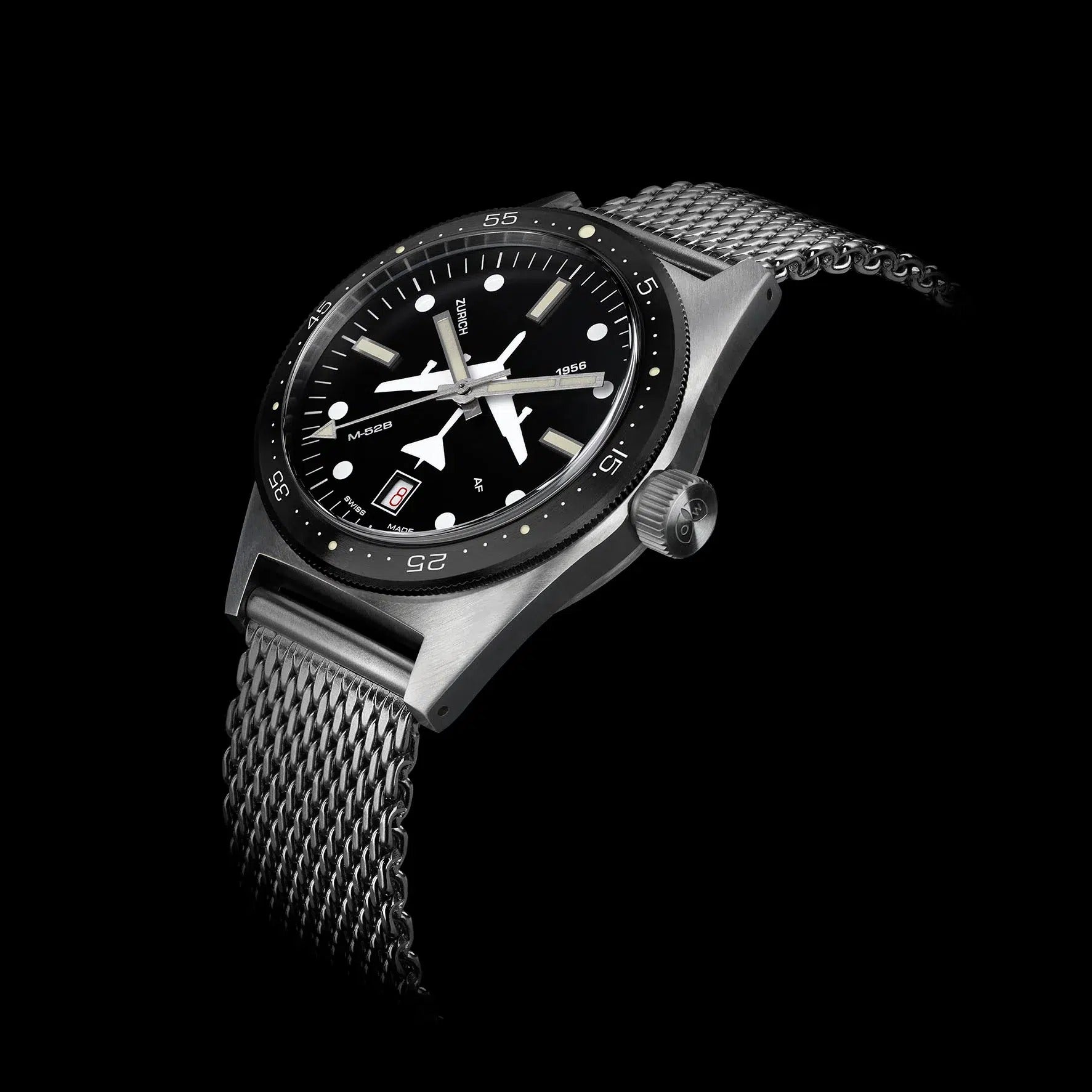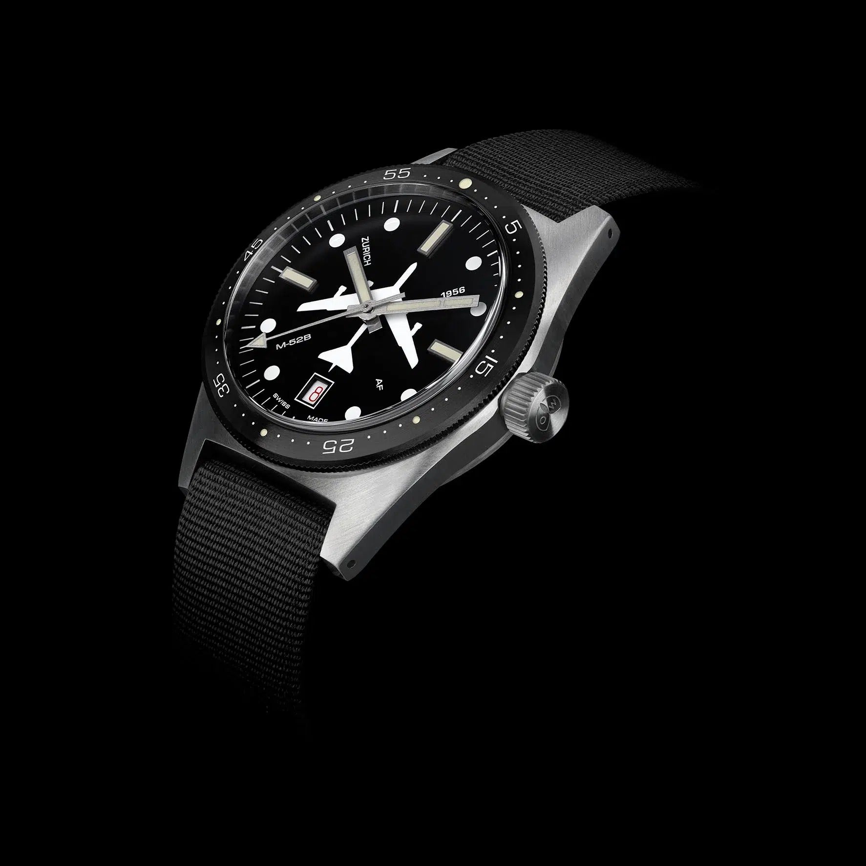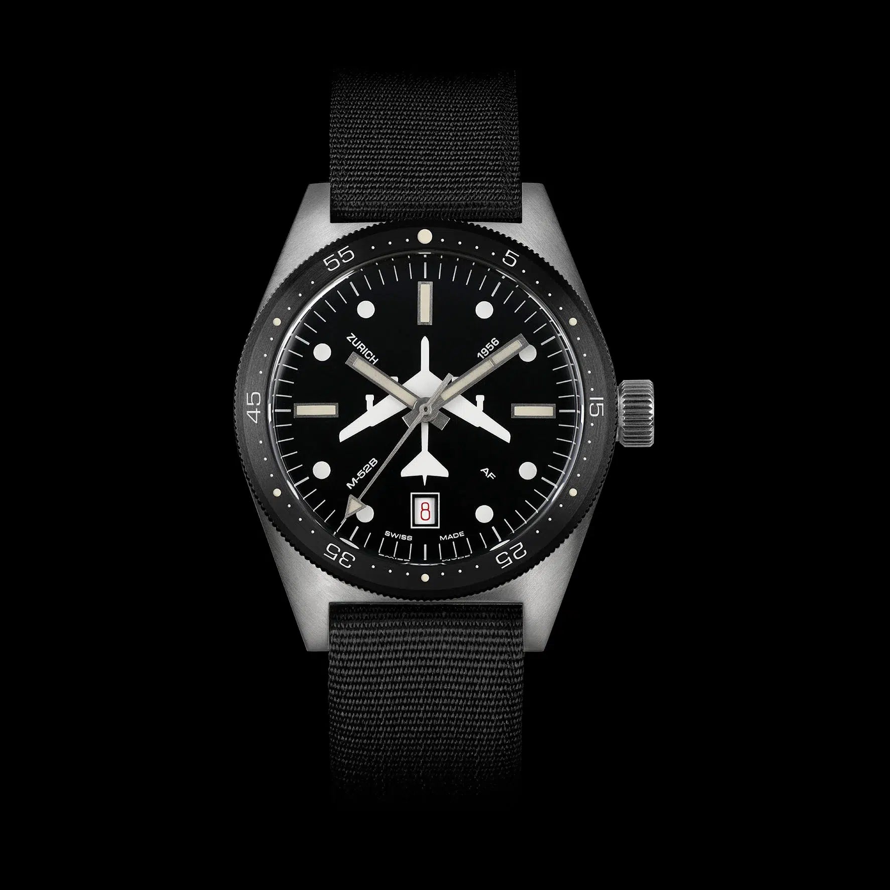 Das Zifferblatt der neuen Ollech Wajs OW M 52B AF trägt die unverwechselbare Silhouette des kultigsten Kampfflugzeugs aller Zeiten, der Boeing B-52 Stratofortress. Ein starkes Symbol des Kalten Krieges und in technischer Hinsicht ein Symbol für Langlebigkeit und Zuverlässigkeit.Obwohl die M-52B AF nicht ganz so schwer zu bekommen ist wie die Vintage-Uhr, von der sie inspiriert wurde, wird sie nur begrenzt verfügbar sein. Bei der Lancierung wird es nur 56 nummerierte Exemplare mit gravierter Krone geben. Danach wird jedes Jahr ein begrenztes Kontingent an nicht nummerierten Exemplaren zur Verfügung stehen.