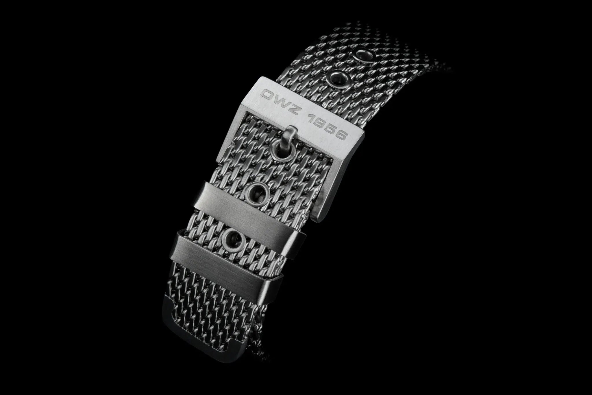 Hochwertiges und sehr haltbares, einteiliges Band aus Nylon mit Dornschließe aus gebürstetem Edelstahl und 'OWZ 1956' Gravur - Milanaiseband (optional)
