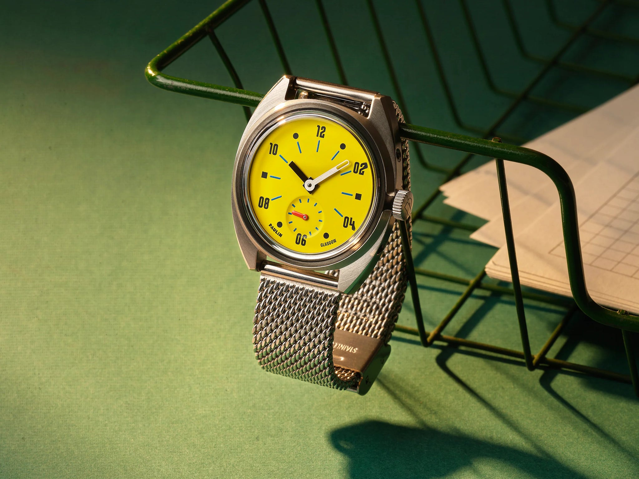 Die kompakte und schlanke Paulin Modul zeichnet sich durch eine kräftige Farbpalette, das elegante Gehäuse in Tonneau-Form und die Doppel-Gehäusekonstruktion aus. Der Name "Modul" leitet sich von seiner modularen Konstruktion ab, die für verschiedene Uhrwerk-Kaliber ausgelegt ist. Das innere, schwarze Gehäuse aus Edelstahl, in dem das Uhrwerk untergebracht ist, ist separat vom äußeren, gebürsteten Stahlgehäuse und ist mit zwei Schrauben auf beiden Seiten befestigt. Angetrieben wird diese Ausführung von dem bewährten Handaufzugskaliber ETA 7001, das mit gebläuten Schrauben und Genfer Streifen hochwertig veredelt ist.
