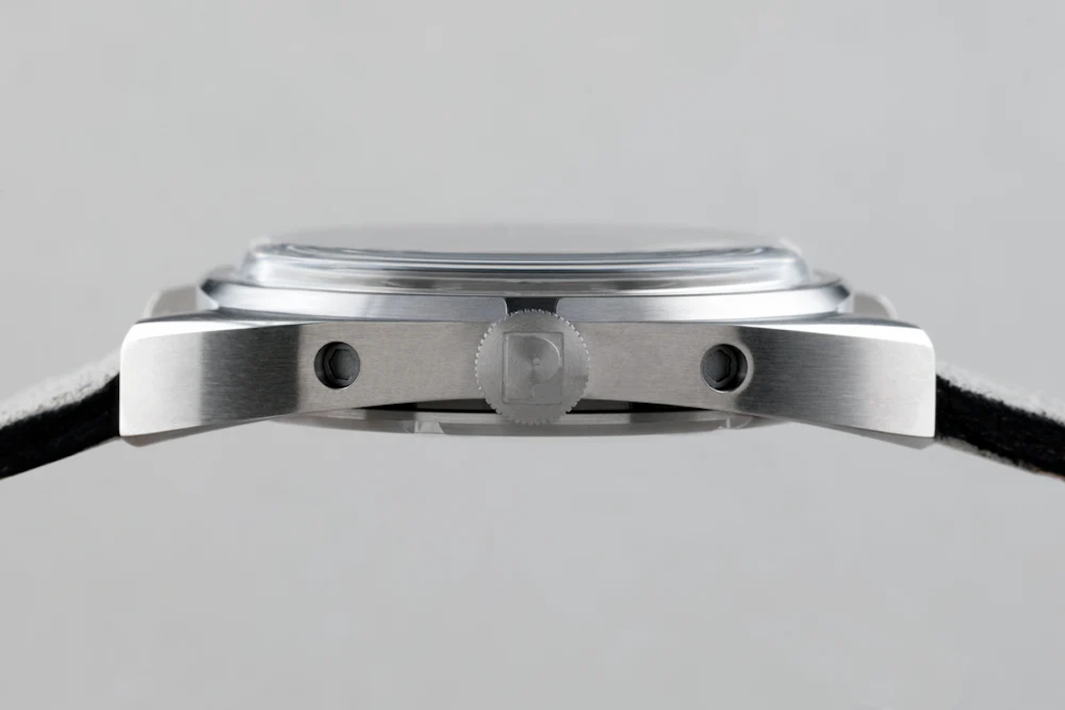 Die aktuelle Paulin Modul-Reihe umfasst auch eine Option in 35 mm mit dem Quarz-Uhrwerk ETA F06.105.