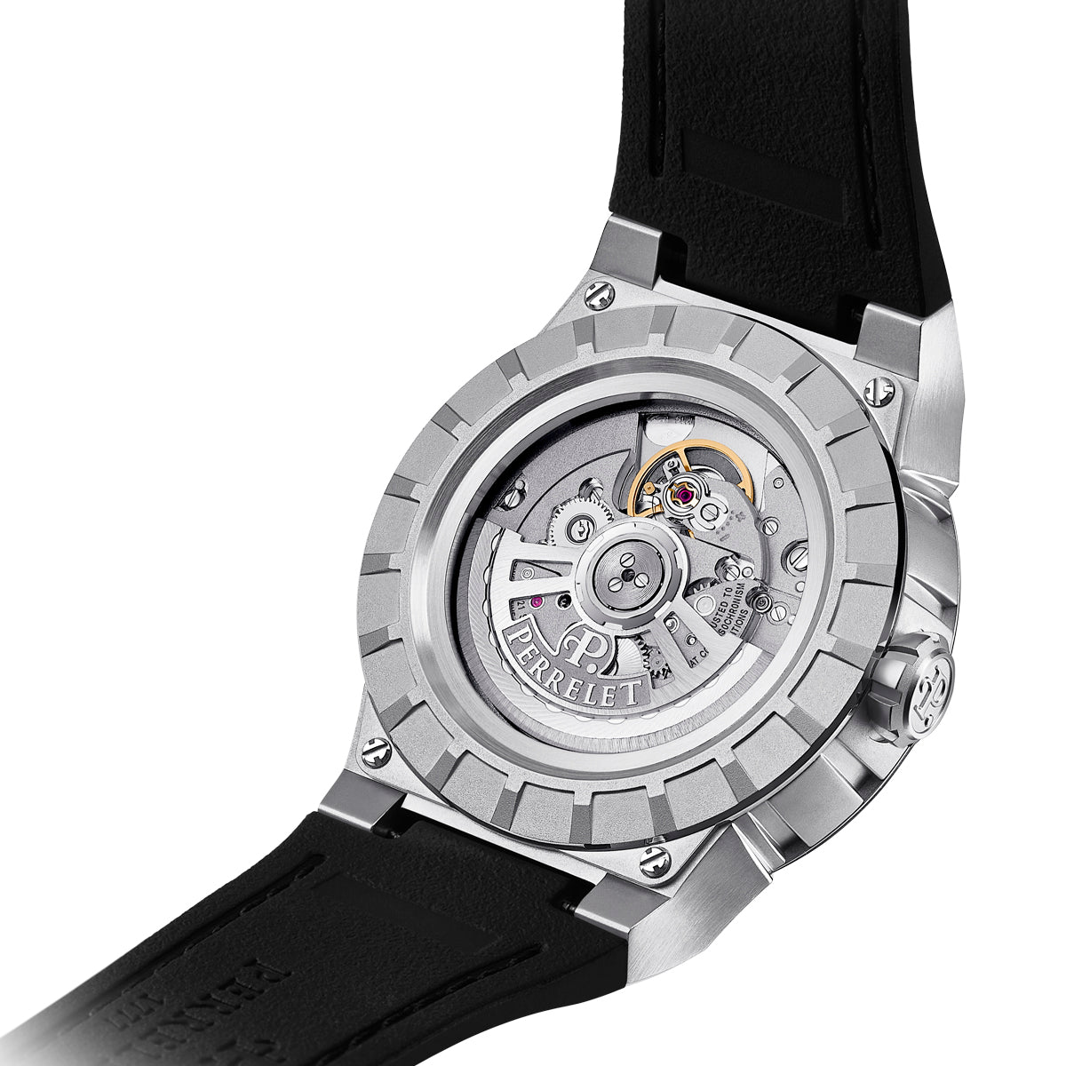 Alle Modelle der Kollektion Turbine EVO sind mit dem von der Manufaktur Perrelet entwickelten Uhrwerk P-331-MH ausgestattet, das COSC-zertifiziert ist und seine hohe Ganggenauigkeit nach einer Reihe von Tests durch ein unabhängiges Labor in der Schweiz unter Beweis stellt.