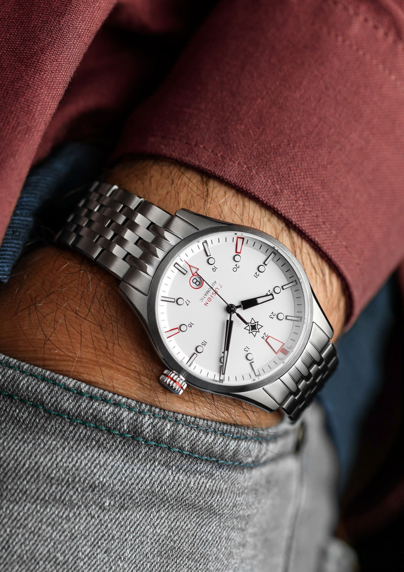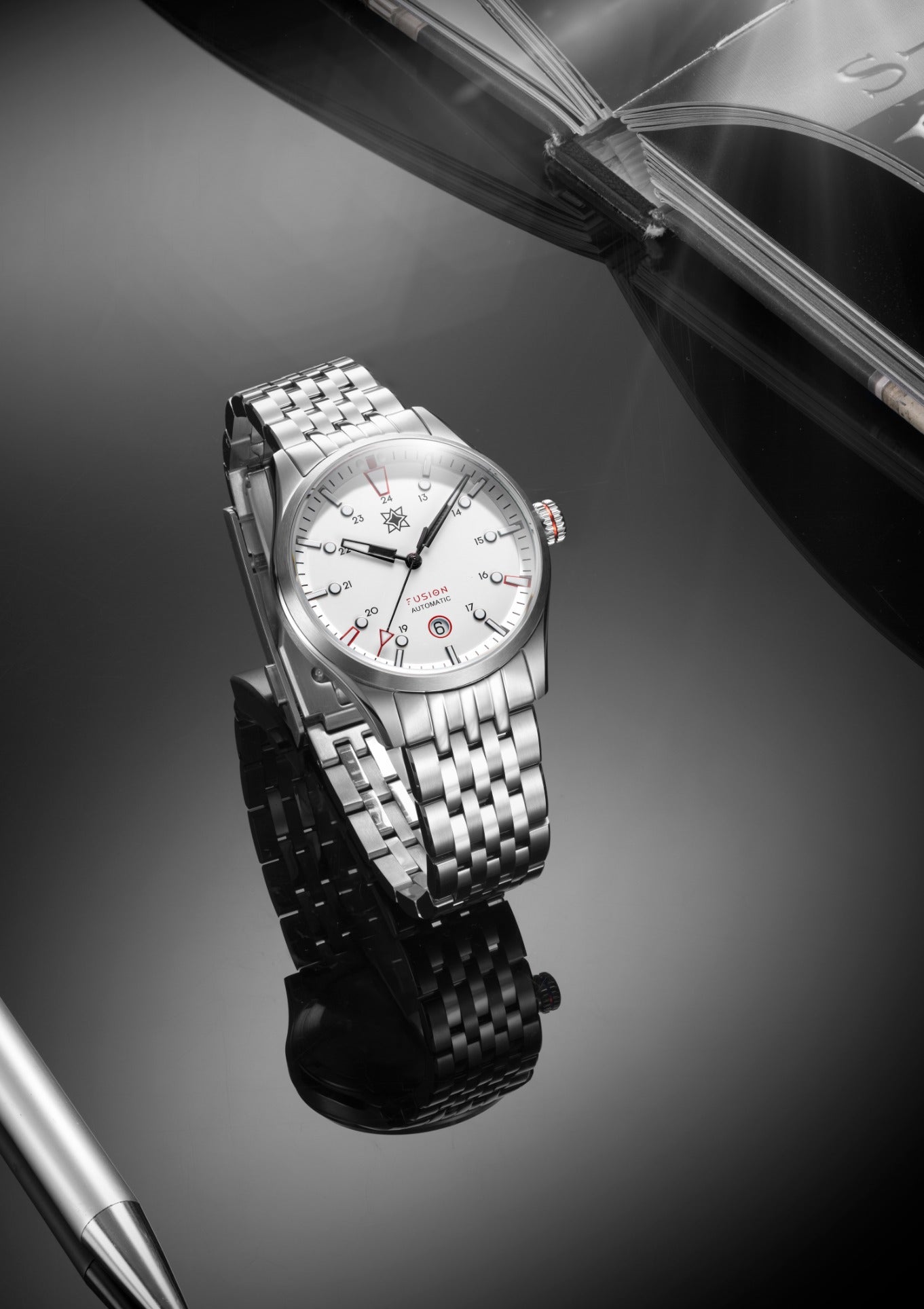 Die Fusion richtet sich sowohl an Liebhaber von Freizeit- als auch von Sportuhren und kombiniert robuste Verarbeitungsqualität und Langlebigkeit mit einem spannenden Gehäuseprofil und wunderschönen Zifferblättern. Jede Komponente wurde für eine hohe Anziehungskraft, perfekte Tragbarkeit und optimale Alltagstauglichkeit entworfen: Ein schlankes Profil, geschwungene Bandanstöße, Schnellwechselsysteme für einen einfachen Bandwechsel und die besonders flache Faltschließe mit werkzeugloser Feinverstellung.