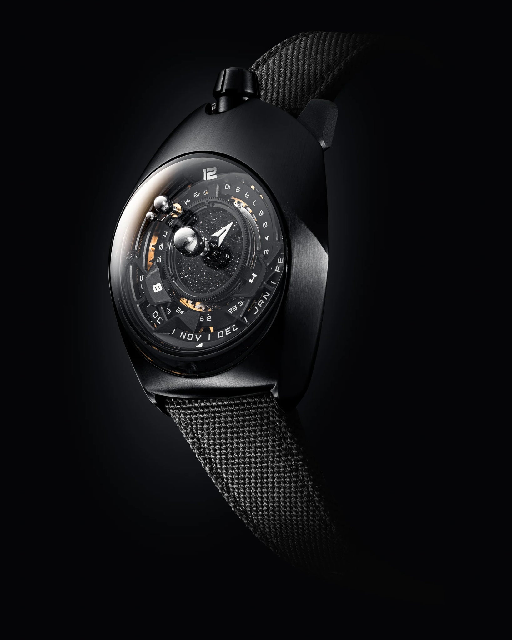Komplikation entworfen von Theo Auffret Gehäuse und Zifferblatt entworfen von Olivier Gamiette Hergestellt in Frankreich