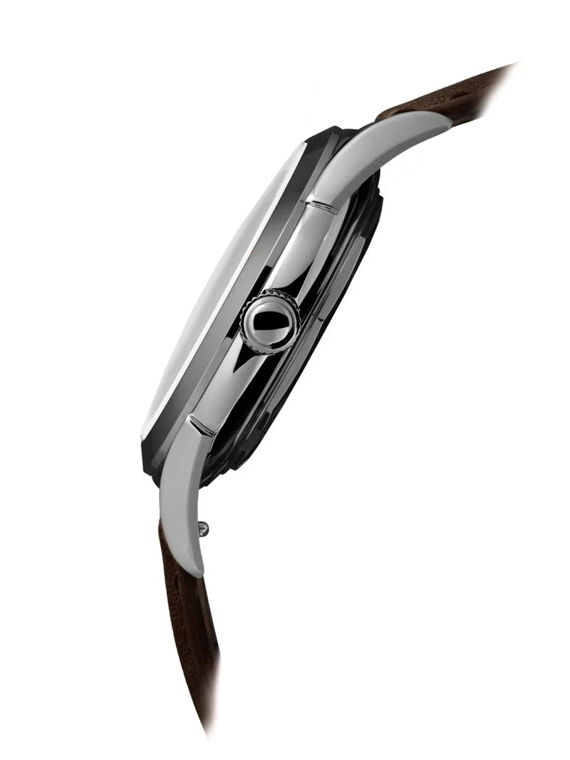 Die Trematic Archivio Uno Ref. 502 ist eine Schweizer Automatikuhr im klassischen Dresswatch-Stil. Inspiriert vom historischen Modell der Marke kombiniert sie ein ultraflaches Gehäuse mit einem zweifarbigen Pie-Pan-Zifferblatt und klarer, zeitloser Gestaltung.