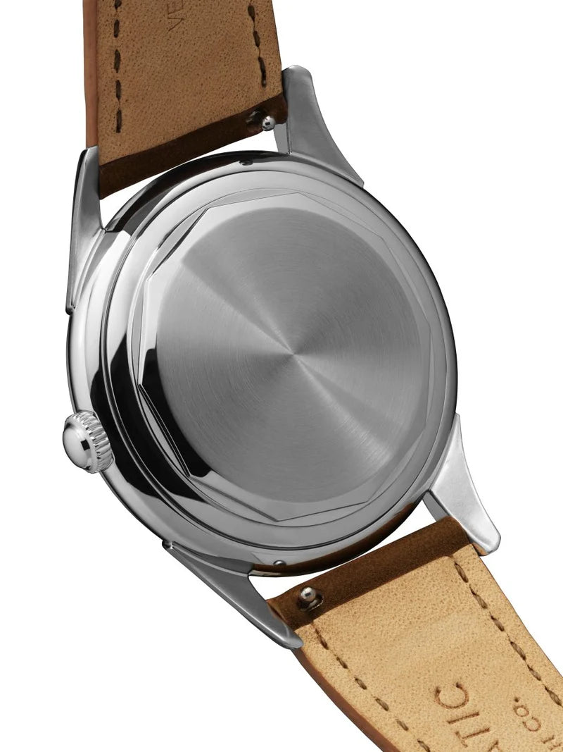 Im Inneren arbeitet das Schweizer Automatikwerk Sellita SW200-1 Elaboré mit ca. 41 Stunden Gangreserve. Die Uhr ist bis 5 ATM wasserdicht und mit einem farblich abgestimmten, veganen Armband mit Schnellwechselsystem ausgestattet.